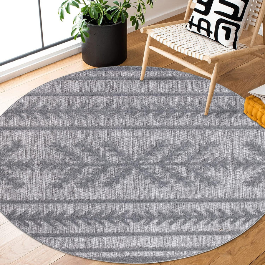 payé Teppich Outdoor Indoor - Rund 200cm - Anthrazit - Boho Design Modern Vintage Teppiche Wohnzimme