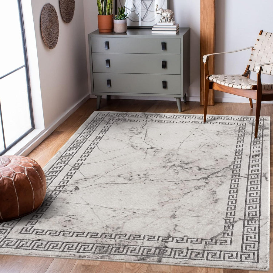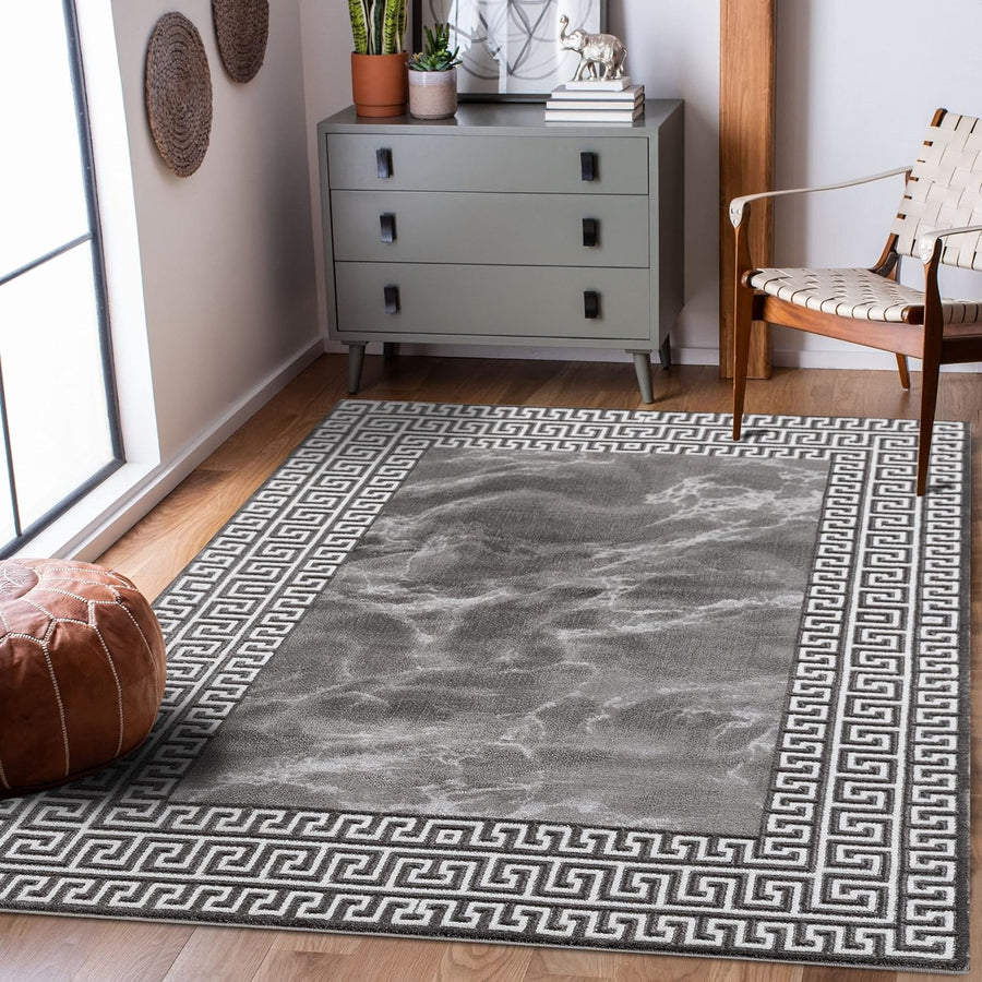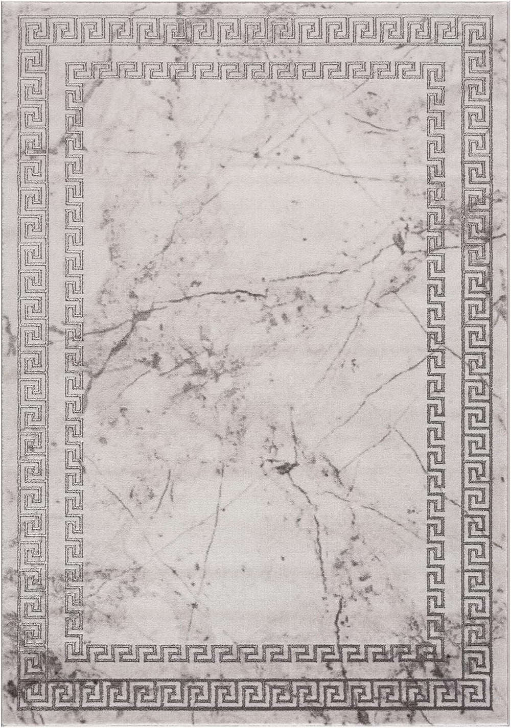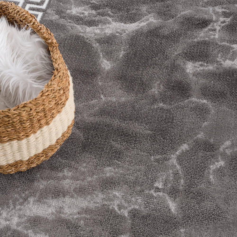 payé Teppich Läufer Korridor - Grau -80x300cm - Modern Vintage Bordüre Muster - Marmor Optik - Boho
