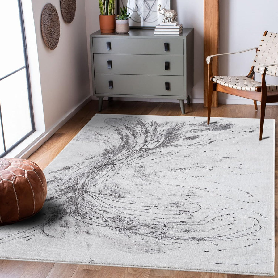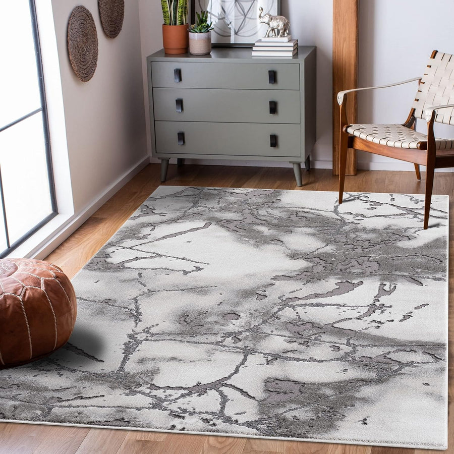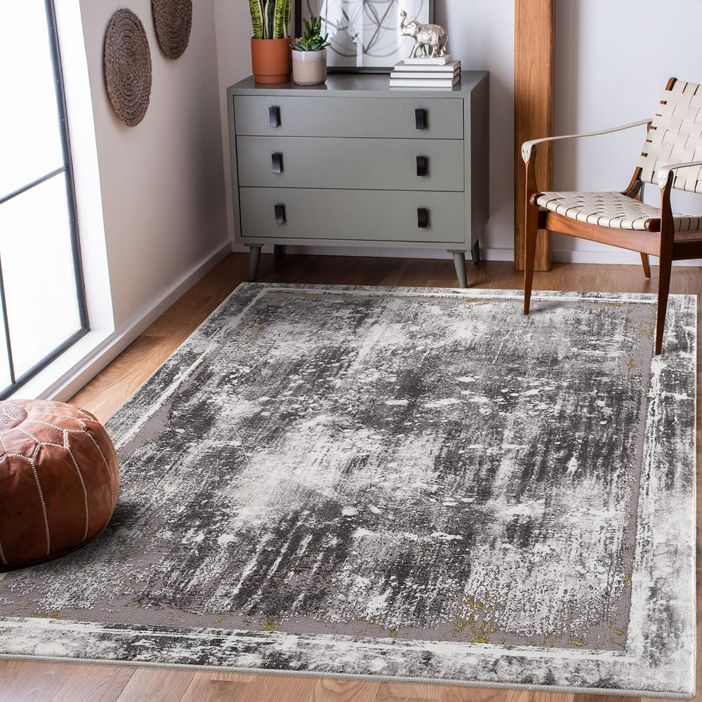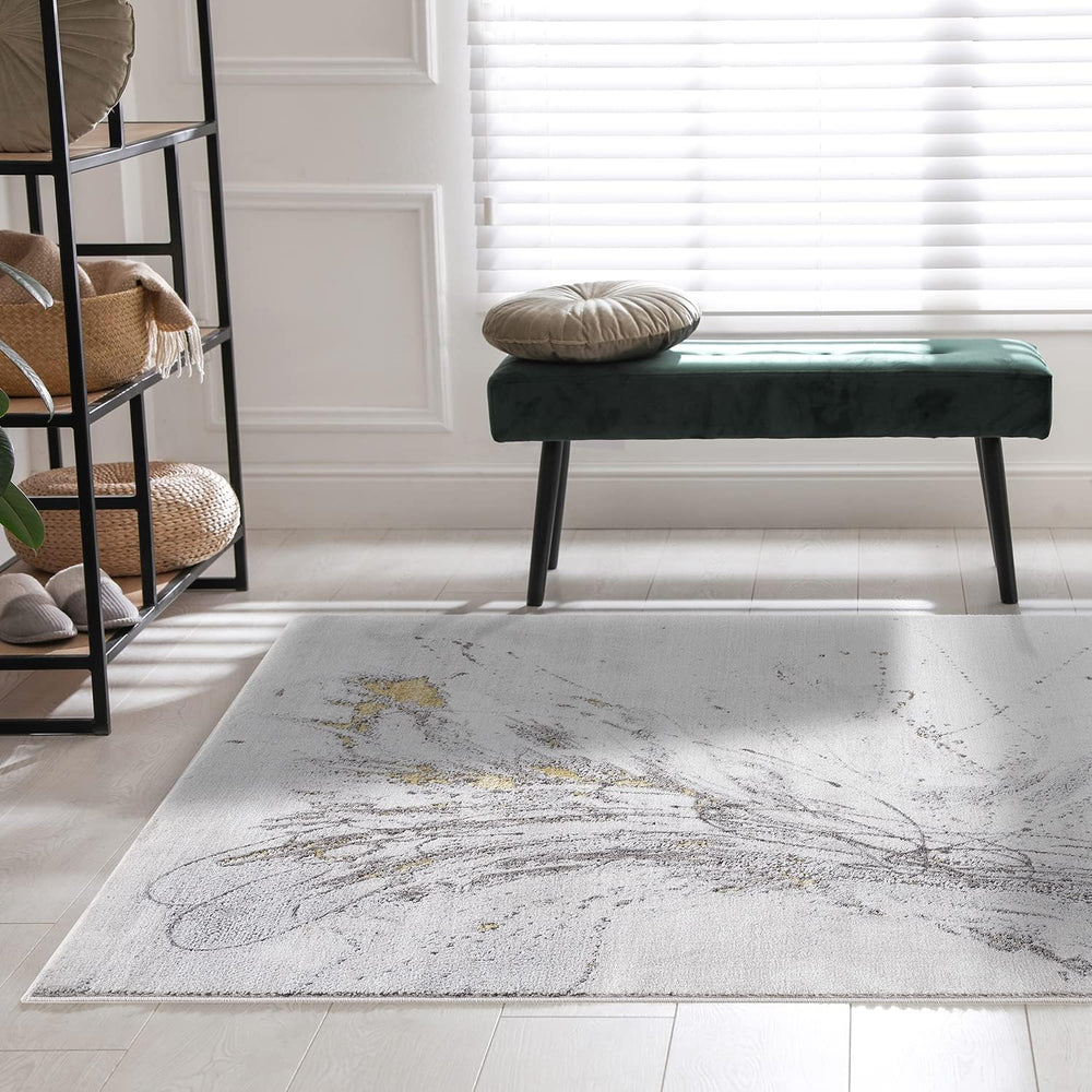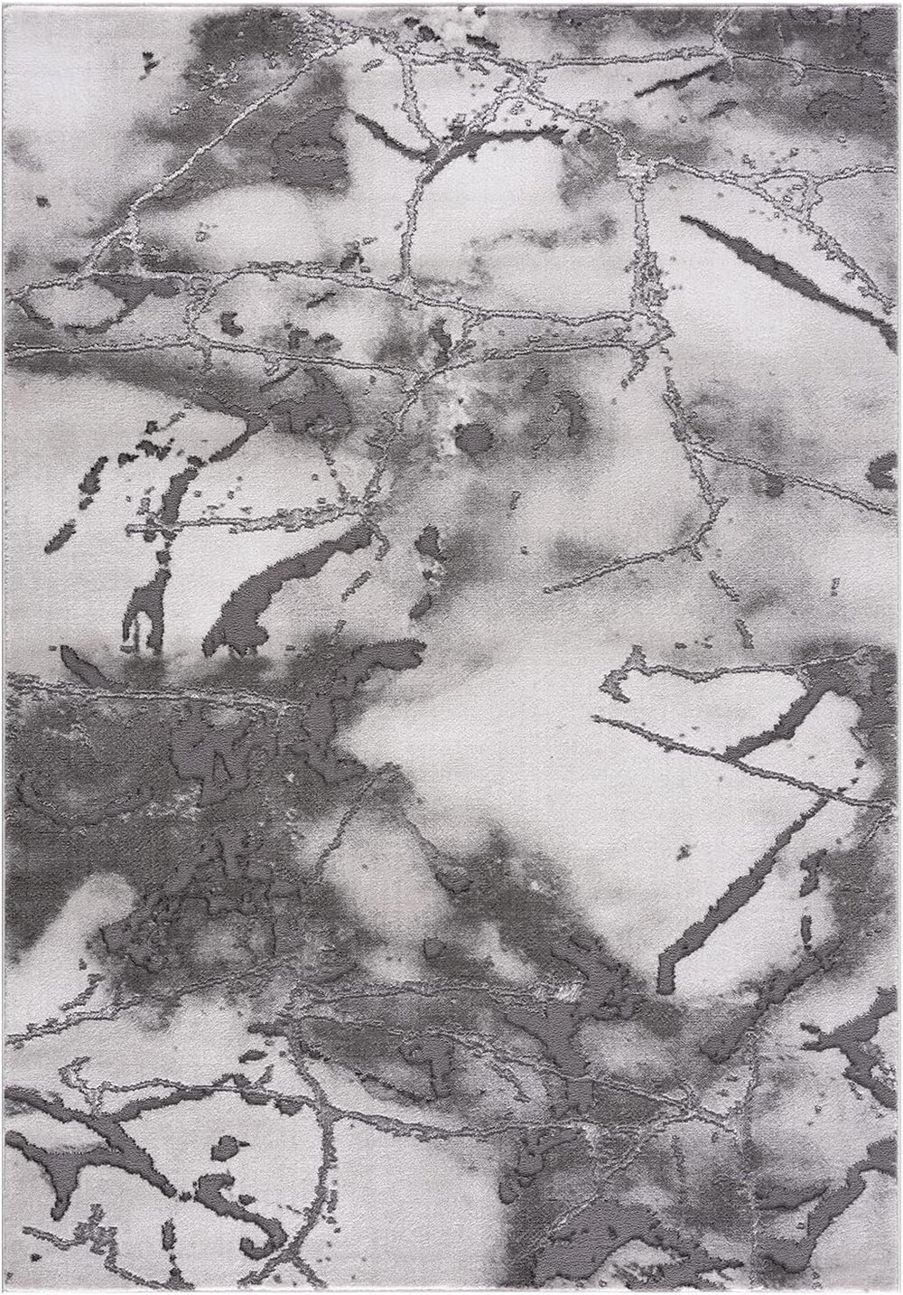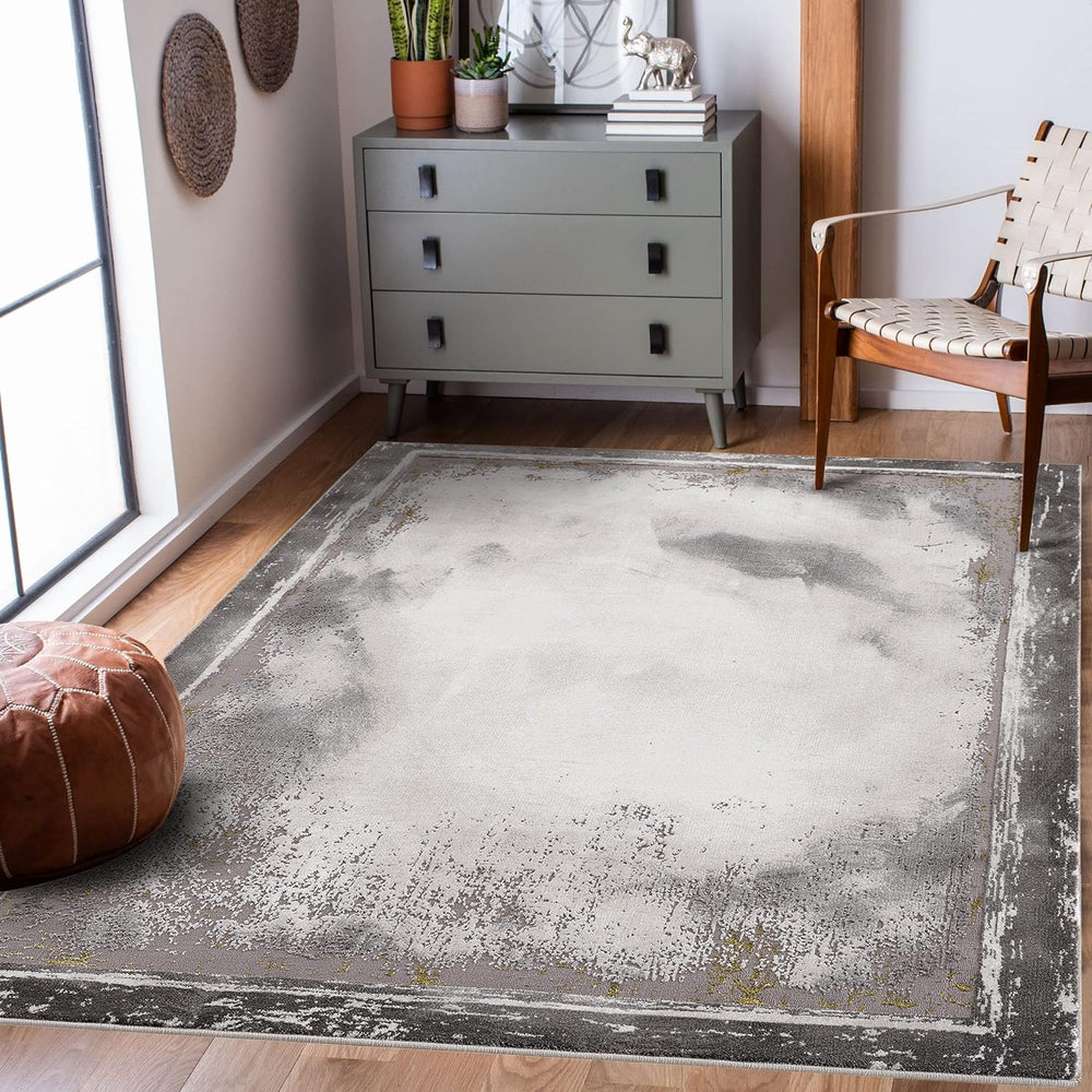 payé Teppich Wohnzimmer - 120x170cm - Grau - Flachflor - Abstrakt Design - Vintage Look - Zweig Opti
