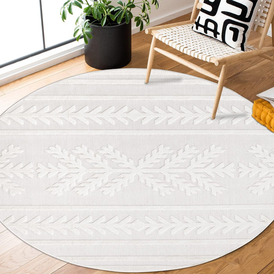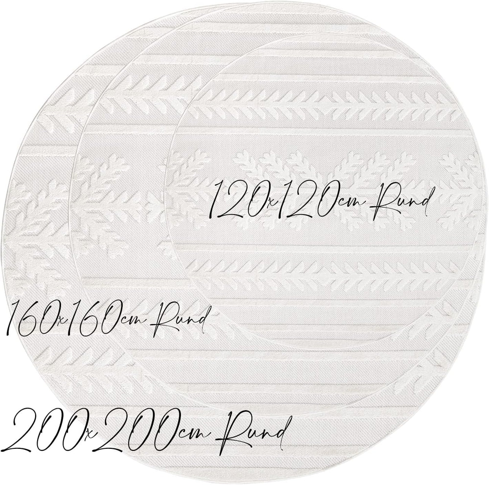 payé Teppich Outdoor Indoor - Rund 200cm - Ethno Creme Weiss - Boho Design Modern Vintage Teppiche W