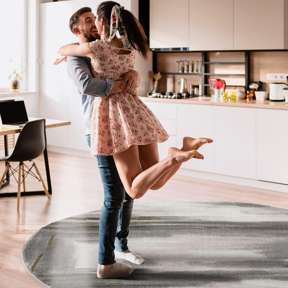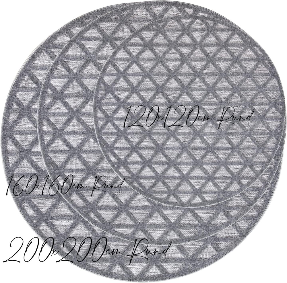 payé Teppich Rund Kurzflor - 120x120cm - Grau - Einfarbig Uni Geometrisch Wellen Muster Modern Wohnz