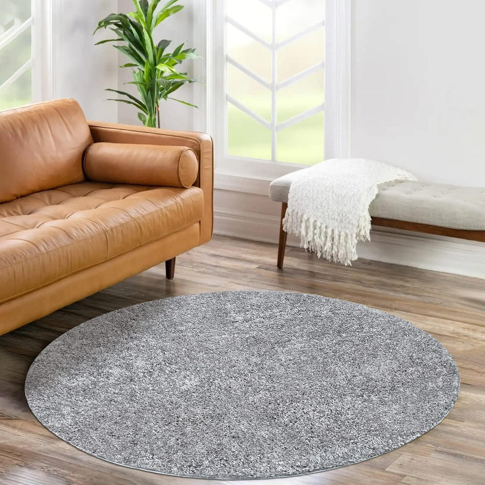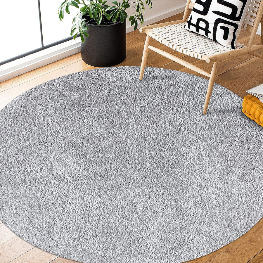 payé Teppich Rund Hochflor Shaggy - 200x200cm - Grau Einfarbig Uni Flauschig Modern Boho Wohnzimmer