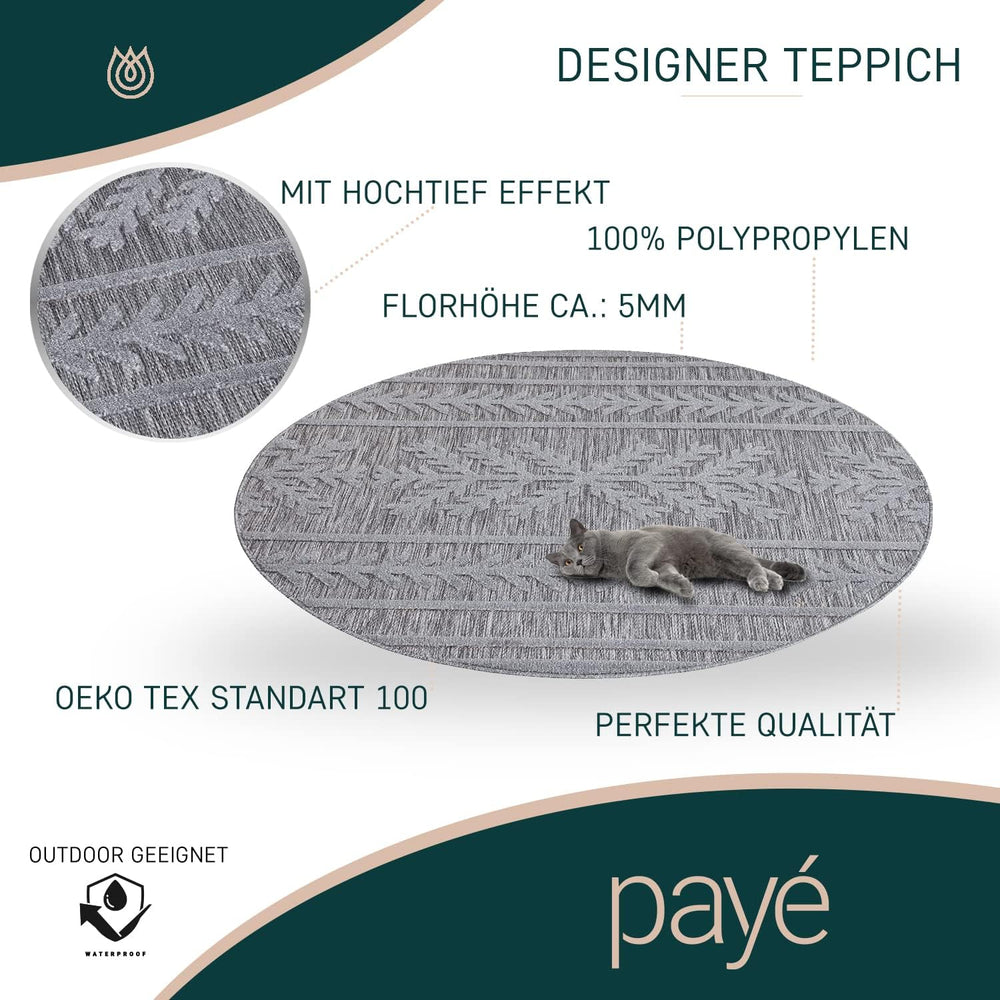 payé Teppich Outdoor Indoor - Rund 160cm - Anthrazit Ethno - Boho Design Modern Vintage Teppiche Woh