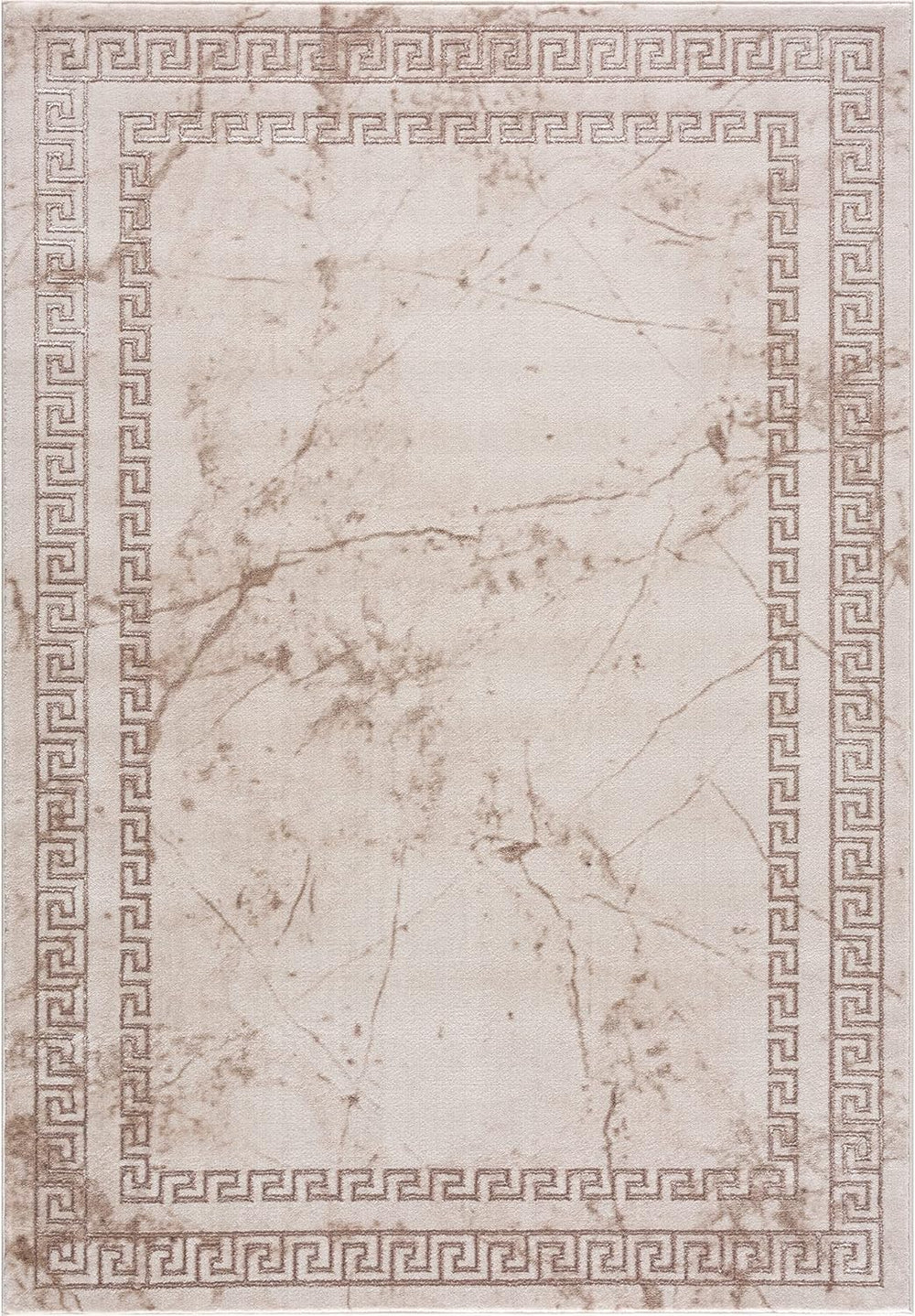 payé Teppich Läufer Korridor - Beige Gold -80x300cm - Modern Vintage Bordüre Muster - Marmor Optik -
