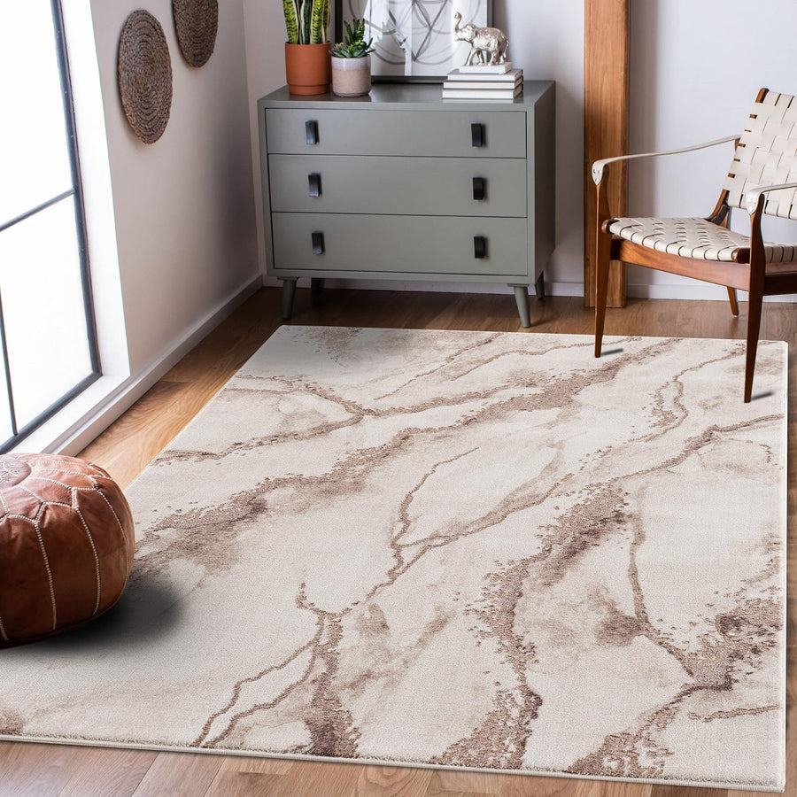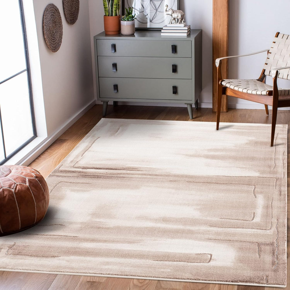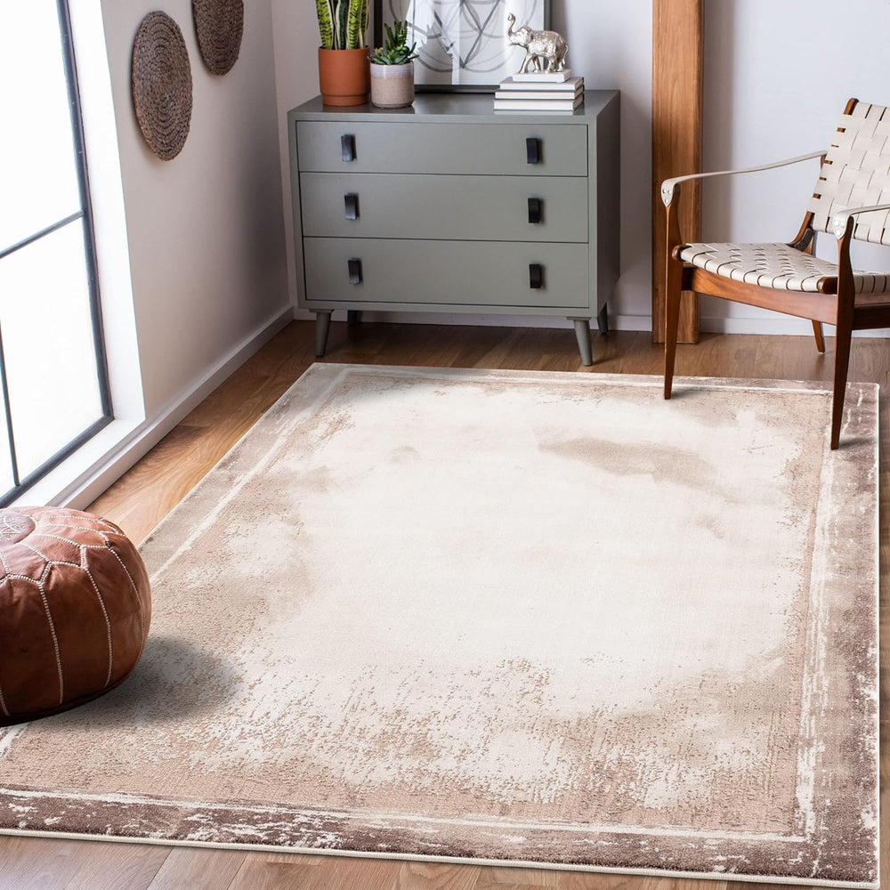 payé Teppich Läufer - Beige Braun - 80x300cm - Bordüre Marmor Optik - Modern Vintage Muster Boho Sty