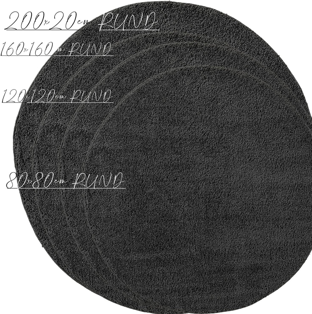 payé Teppich Rund - Hochflor Shaggy - Anthrazit -160x160cm - Einfarbig Soft Weich Schlafzimmer Kinde