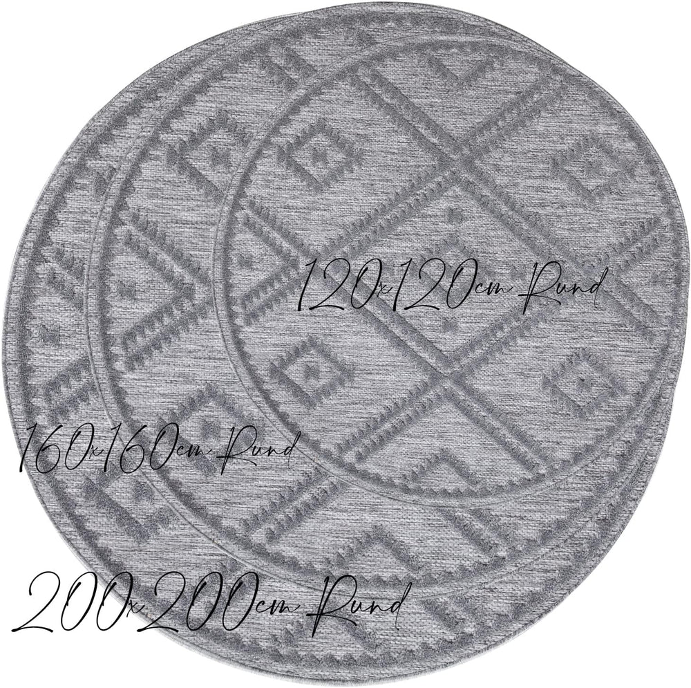payé Teppich Outdoor Indoor - Rund 200cm - Anthrazit Ethno - Boho Design Modern Vintage Teppiche Woh