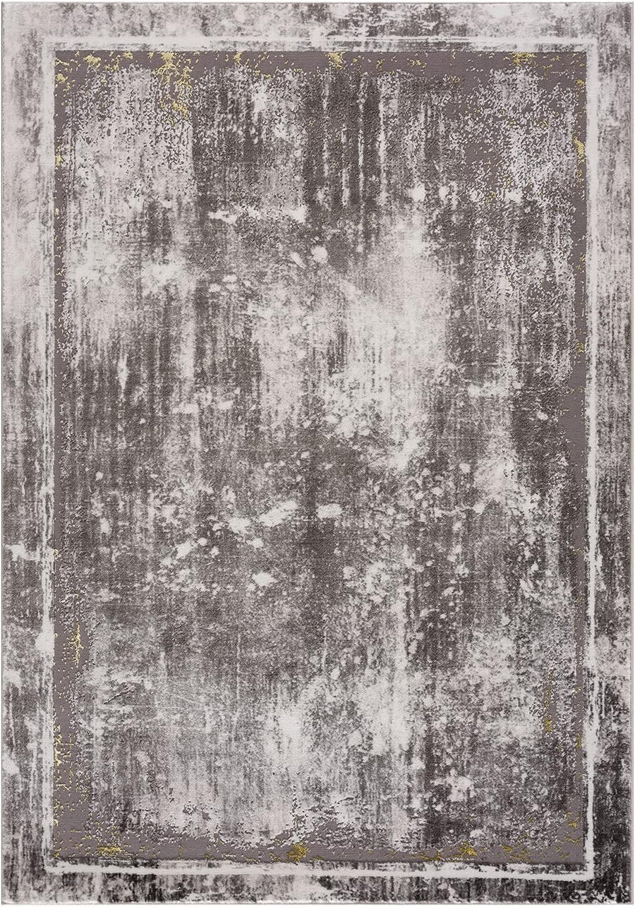 payé Teppich Läufer fürs Flur - 80x300cm - Grau Gold - Abstraktes Design - Vintage Design - Ethno Lo