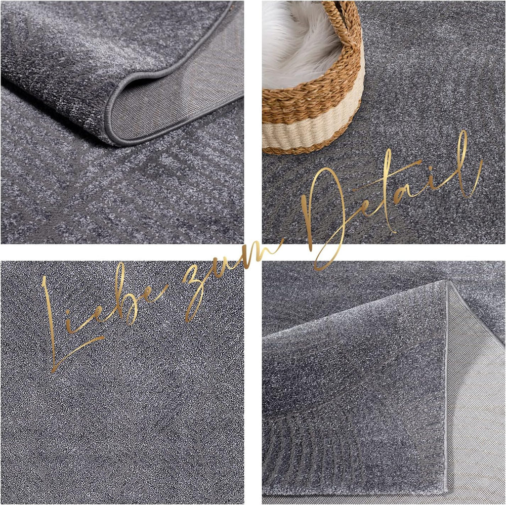 payé Teppich Läufer fürs Korridor - 80x300cm - Anthrazit - Kurzflor- Weich - Vintage Optik - Ornamen