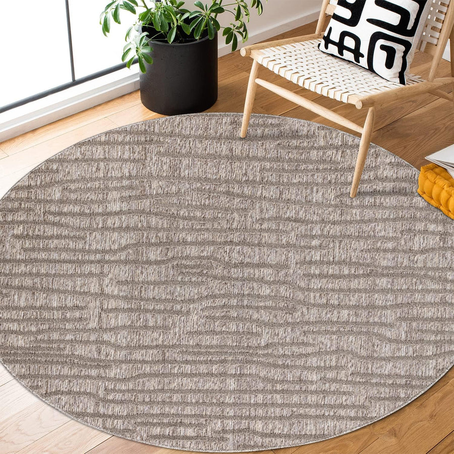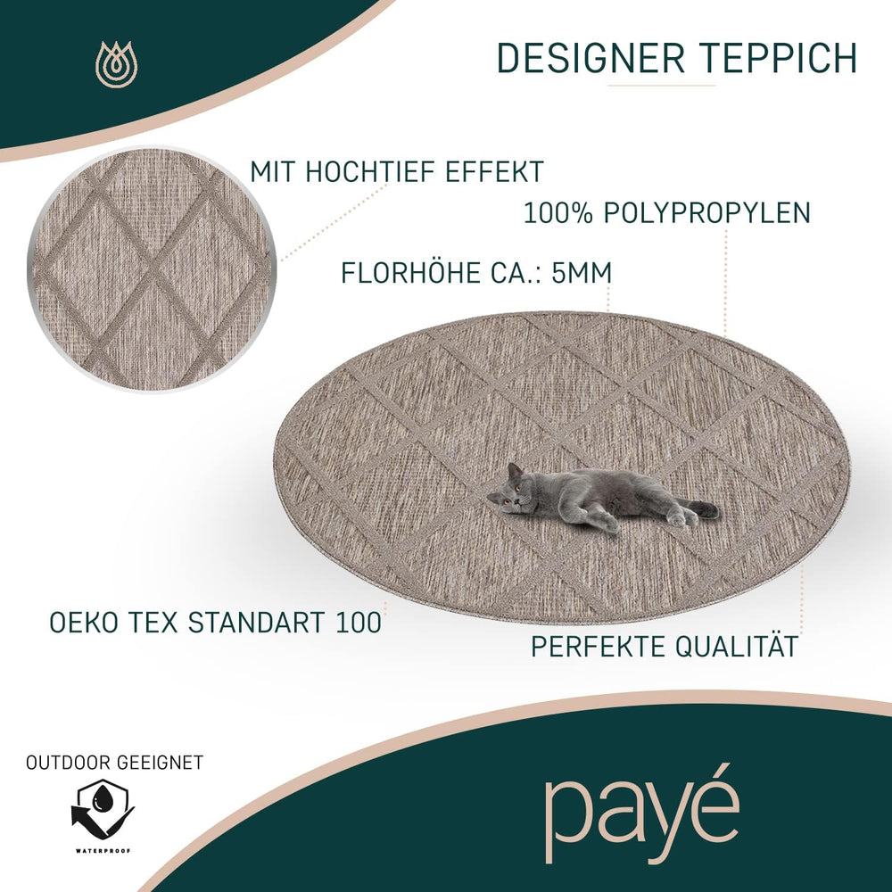 payé Teppich Outdoor Indoor - Rund 200cm - Braun - Boho Design Modern Vintage Teppiche Wohnzimmer fü