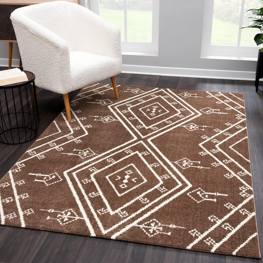 payé Teppich Läufer Ethno Berbermuster - Braun 80x300cm - Hochflor weich Boho Schlafzimmer Flur Deko