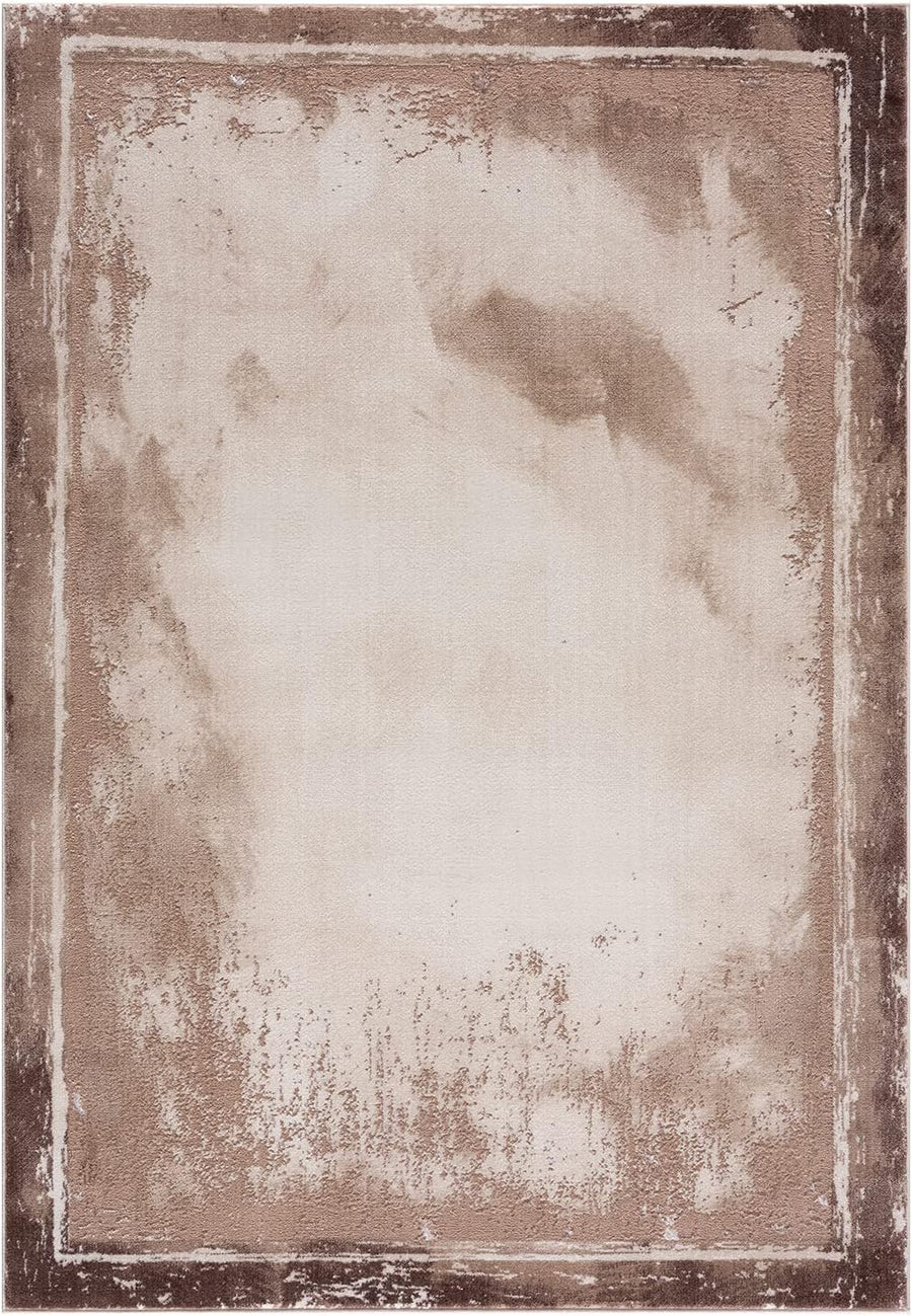 payé Teppich Läufer Korridor - Beige Braun -80x300cm - Modern Vintage Bordüre Muster - Marmor Optik