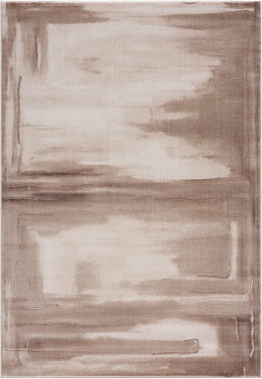 payé Teppich Läufer Flur - 80x150cm - Beige Einfarbig Wohnzimmer Uni Geometrisch Wellen Muster Moder