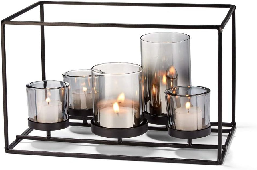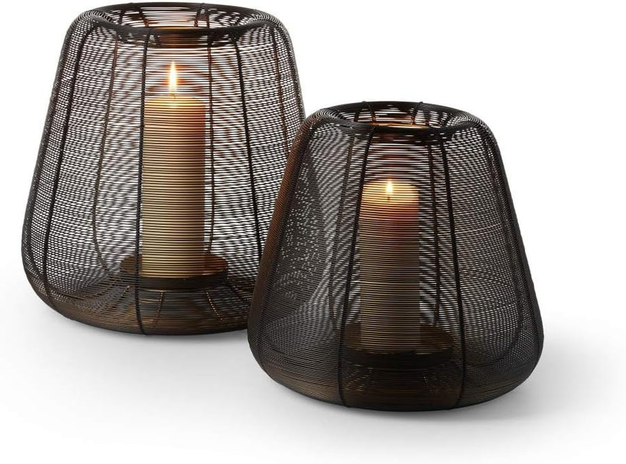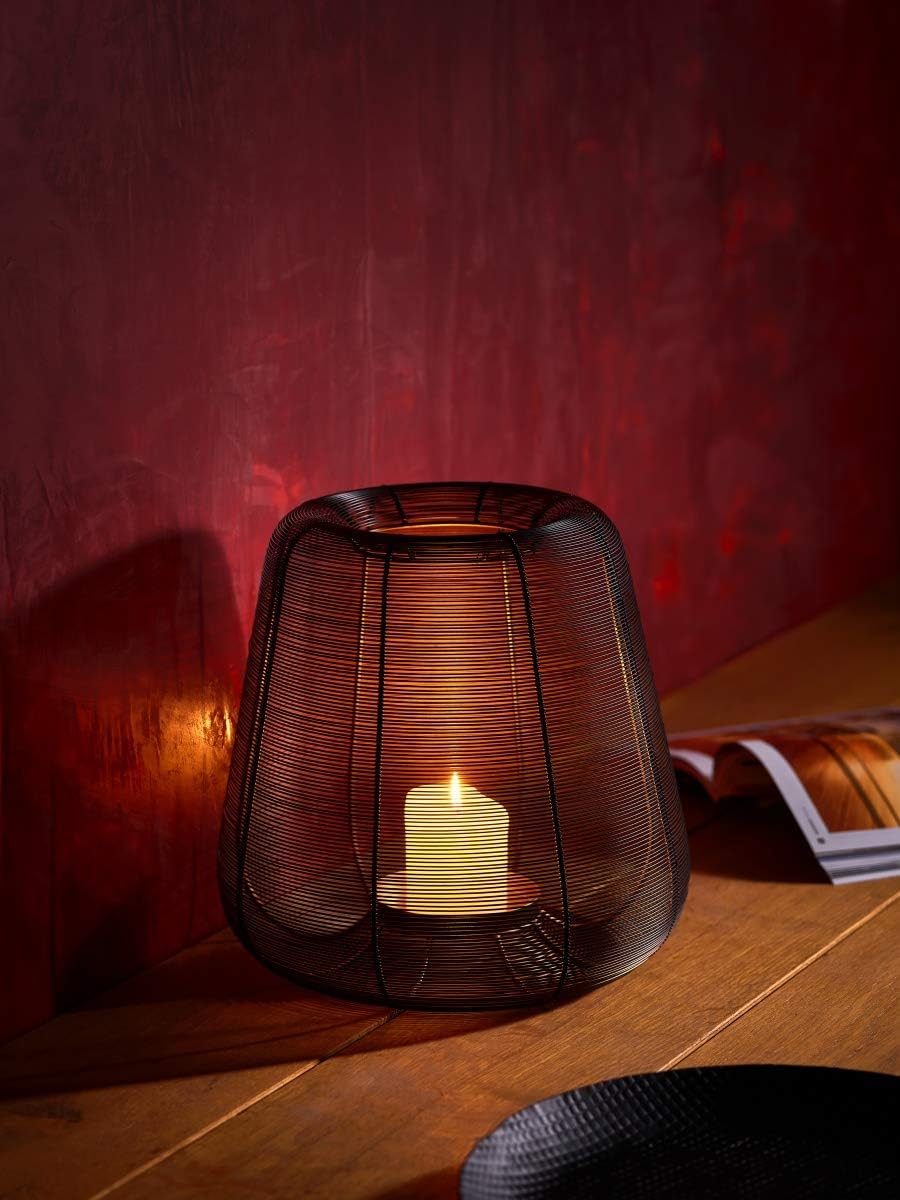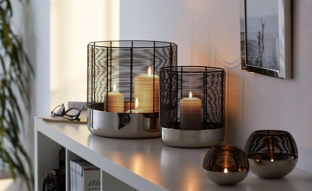 Philippi - Luna Windlicht L - glänzende Basis kominiert mit Einer Haube aus schwarzem Drahtgeflecht