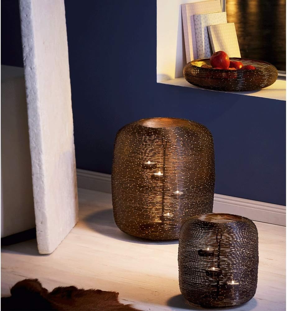Philippi - Luanda Windlicht - 31 cm hoch - filigranes Dekolicht mit Goldbeschichtung auf der Innense
