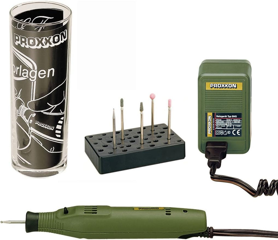 Proxxon 28635 Gravier-Komplett-Set mit Probierglas inkl. GG12 / GG 12, Zubehör und Koffer
