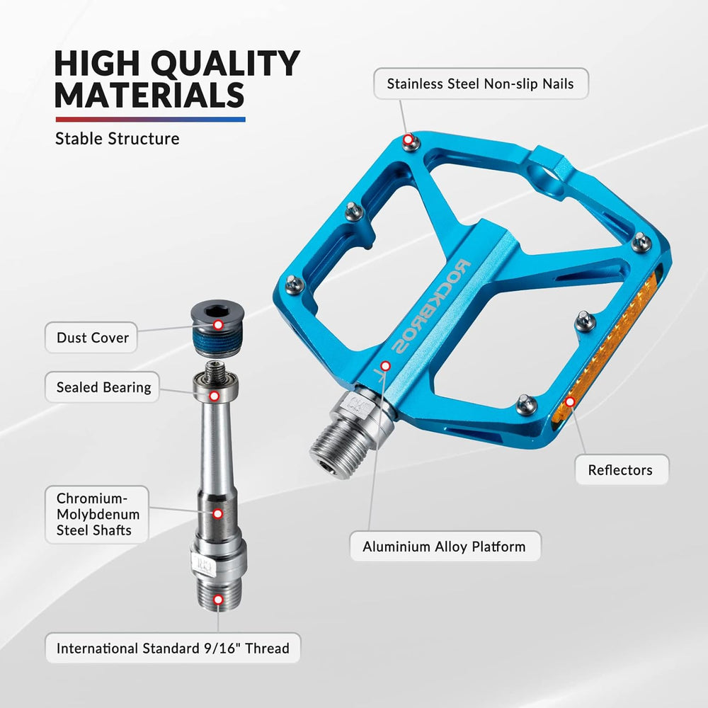 ROCKBROS Fahrradpedale mit Reflektoren Platform Pedale aus Aluminiumlegierung Antirutsch Ultraleicht