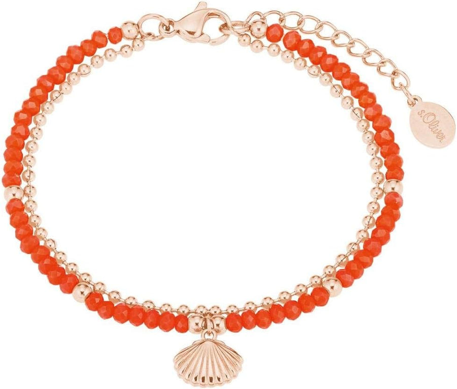 s.Oliver 2027600 Damen Armband Muschel Edelstahl Rose rot 20 cm