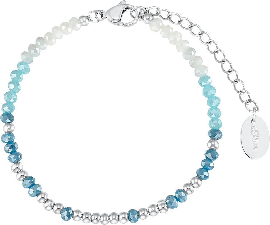 s.Oliver Armband Edelstahl Damen Armschmuck, mit Glasperle, 16+4 cm, Blau, Kommt in Schmuck Geschenk