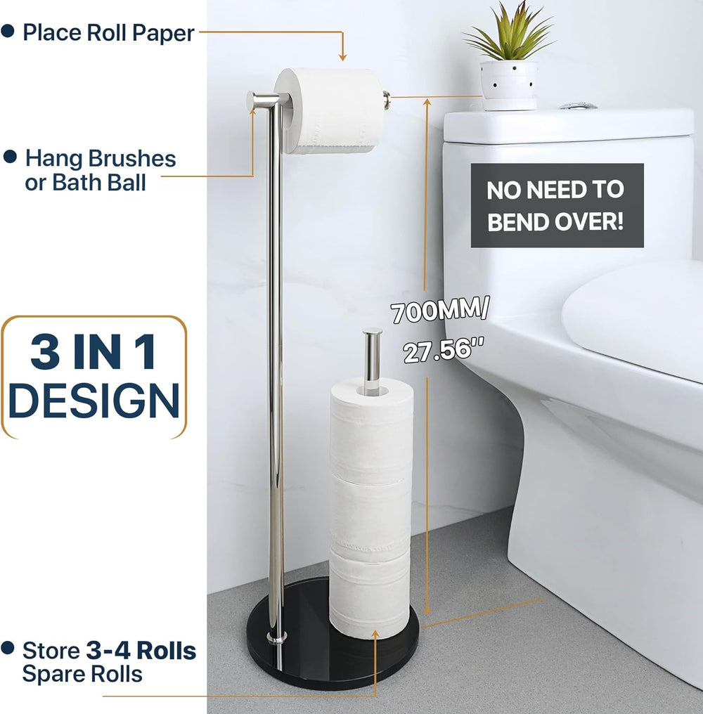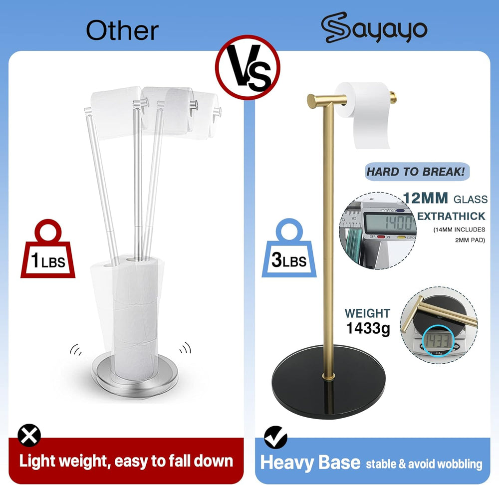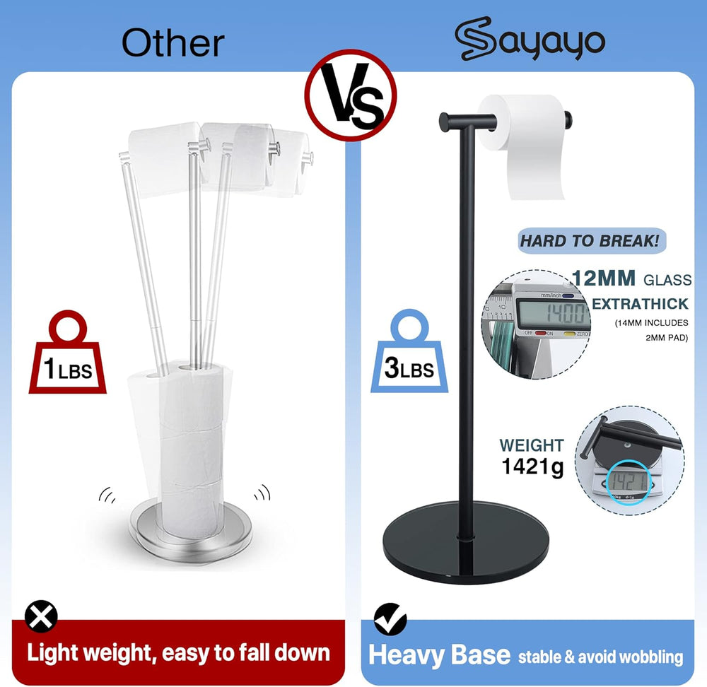 Toilettenpapierhalter Stehend, SAYAYO Klopapierhalter Stehend mit Gehärtetem Glas Basis Schwarz und