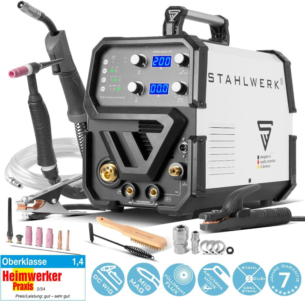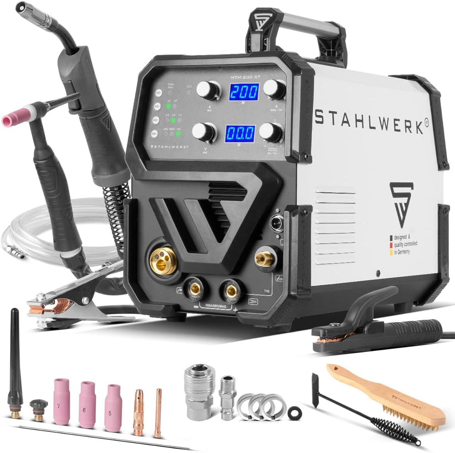 STAHLWERK Schweissgerät 3 in 1 Kombi MTM-200 ST - Inverter mit 200 A, WIG, MIG MAG, MMA, synergische