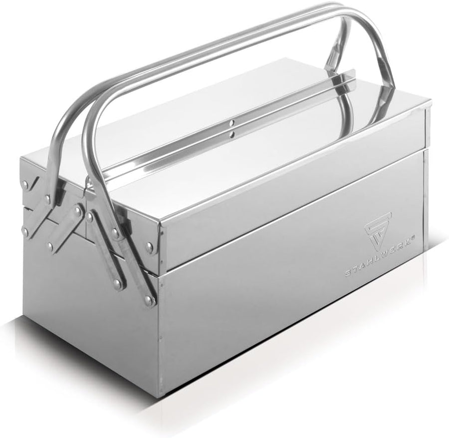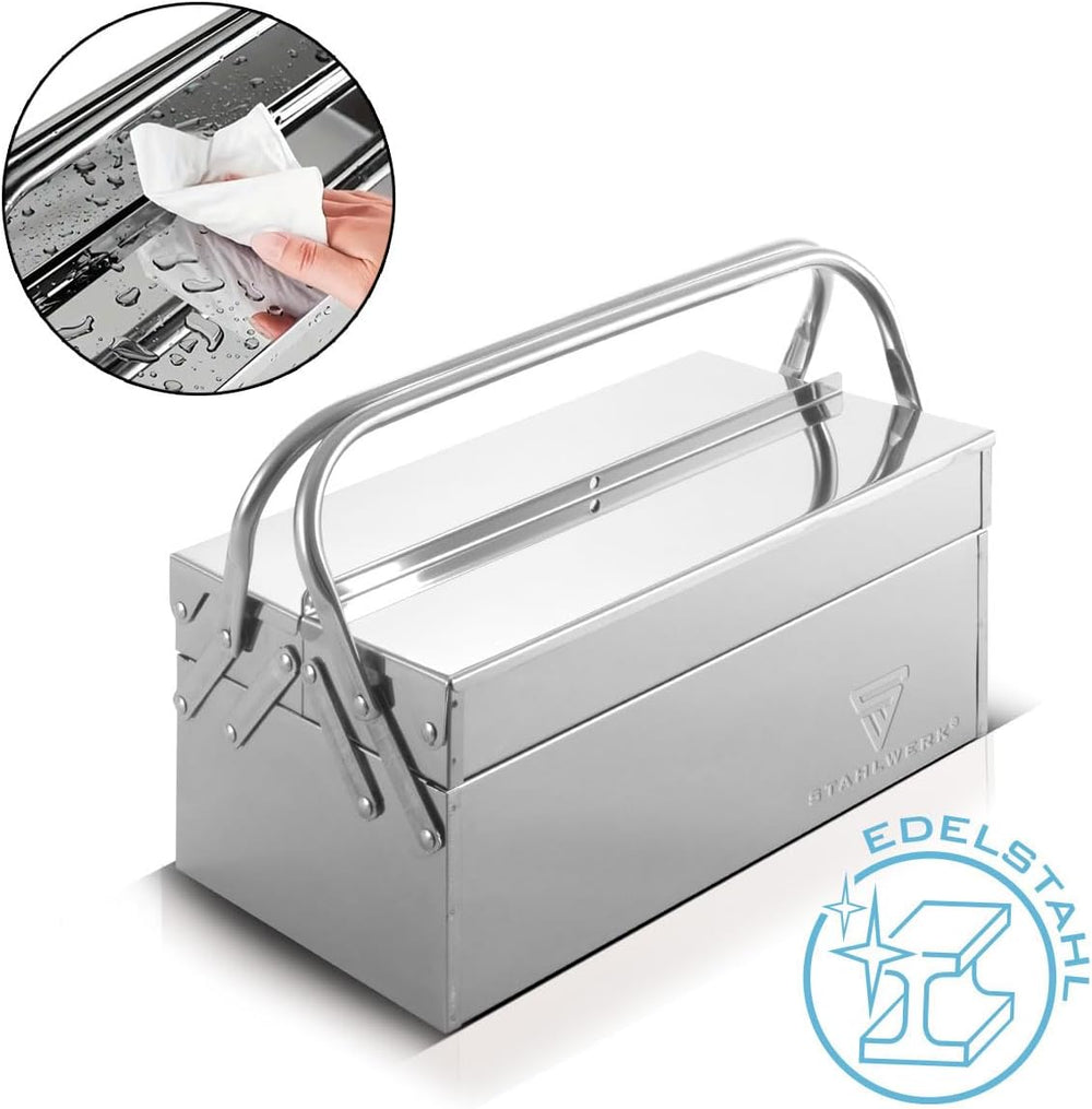 STAHLWERK Werkzeugkasten aus Edelstahl Werkzeugkiste aus Metall, seitlich ausziehbar hochwertige Wer