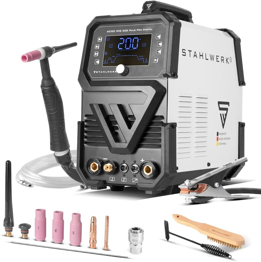 STAHLWERK Schweissgerät AC/DC WIG 200 Puls Pro Digital - Inverter mit 200 A, IGBT, MMA/ARC, Puls- &