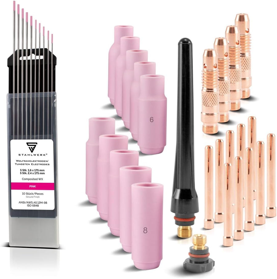 STAHLWERK WP-26 WIG Schweisszubehör Schweissgerät Verschleissteile: Spannhülsen + Gehäuse + Keramikd