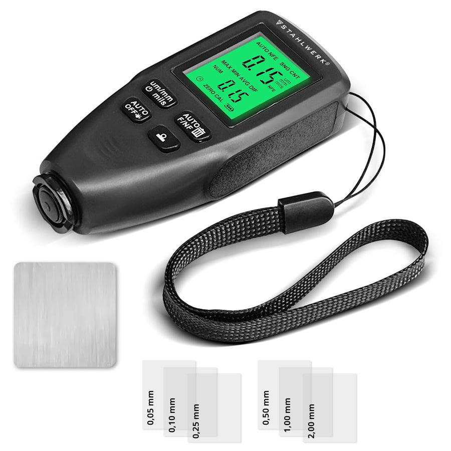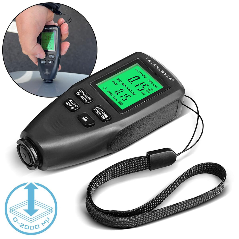 STAHLWERK Schichtdickenmessgerät – Kompakter Lackdickenprüfer 0-2000 µm für KFZ und Materialprüfung,