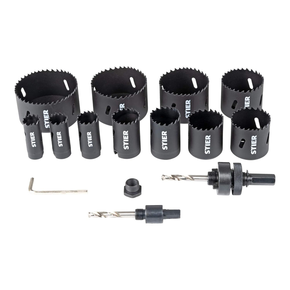 STIER Lochsägen-Set HSS-Co8 Bimetall, 17-teilig (20, 22, 25, 32, 35, 40, 44, 51, 60, 68, 76 mm), Loc
