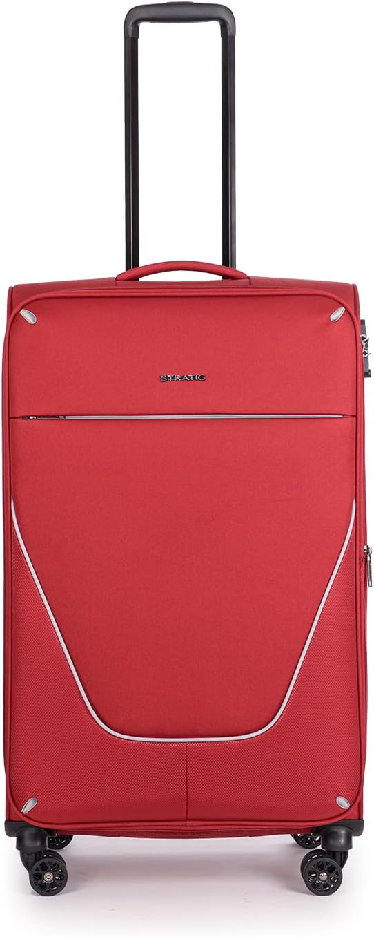Stratic Strong Koffer Weichschale Reisekoffer Trolley Rollkoffer Handgepäck, 4 Rollen, Grösse S, Rot