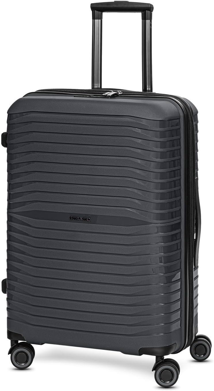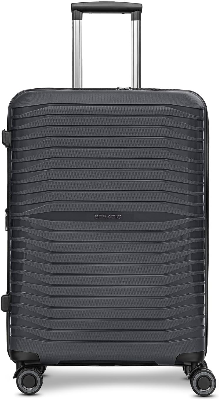 Stratic Shine Koffer gross | Trolley mit 4 360° Drehbare Rollen, Kreuzpackgurt, Dehnfalten, arretier