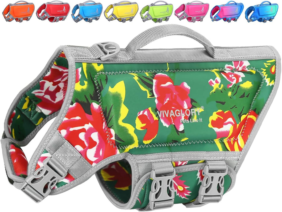 VIVAGLORY Neoprene Schwimmweste Hund, Rettungsweste Hund für Bootfahren, Schwimmweste, Schwimmhilfe
