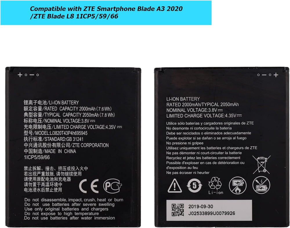 [NEU] Vvsialeek Li3820T43P4h695945 Ersatz Akku für ZTE Smartphone Blade A3 2020 & ZTE Blade L8 1ICP5