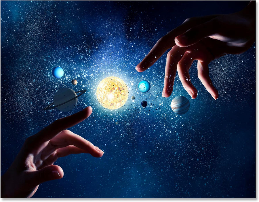 wandmotiv24 Fantasy Motiv als Leinwandbild, 60x45cm, Querformat, Weltall, Hände, Planeten, Sterne, D