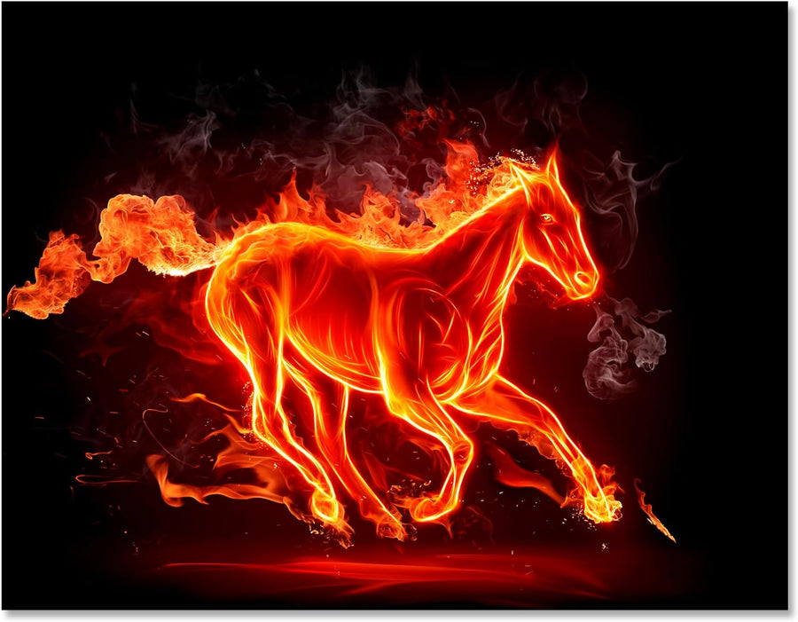 wandmotiv24 Fantasy Leinwandbild, Grösse 40x30cm, Querformat, Feuer-Pferd, Effekte, Feuer und Flamme