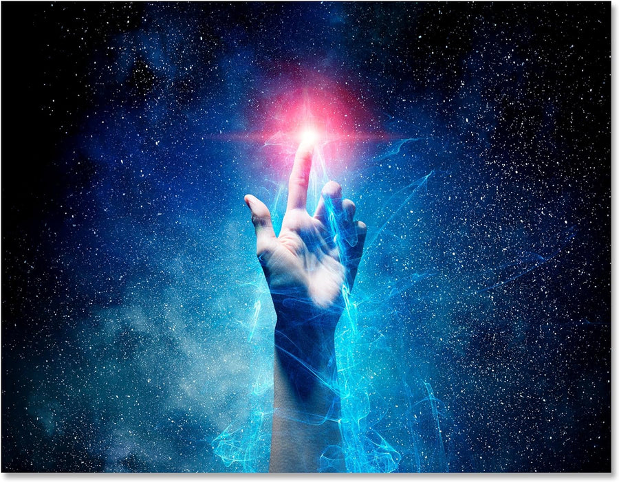 wandmotiv24 Fantasy Motiv als Leinwandbild, 60x45cm, Querformat, Weltall, Hand, Planeten, Sterne, Ef