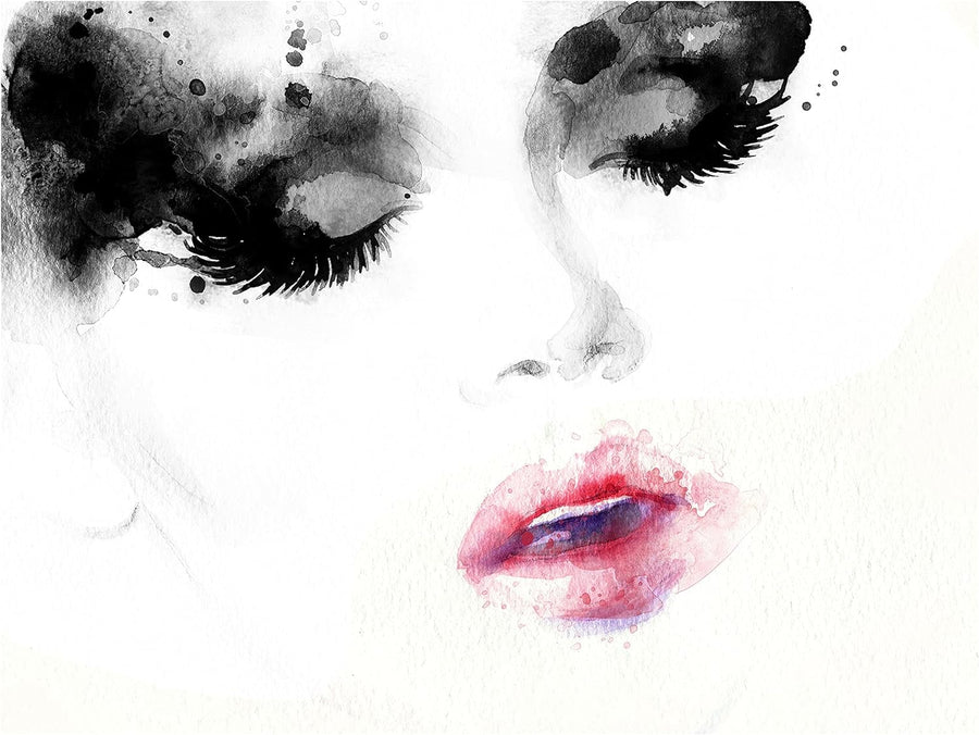 wandmotiv24 Deko Wandbild aus Acrylglas, Grösse 40x30cm, Querformat, Makeup, Gemälde, Wimpern, Frau,