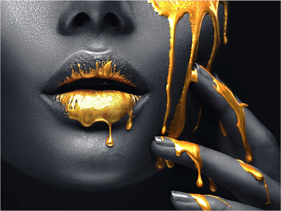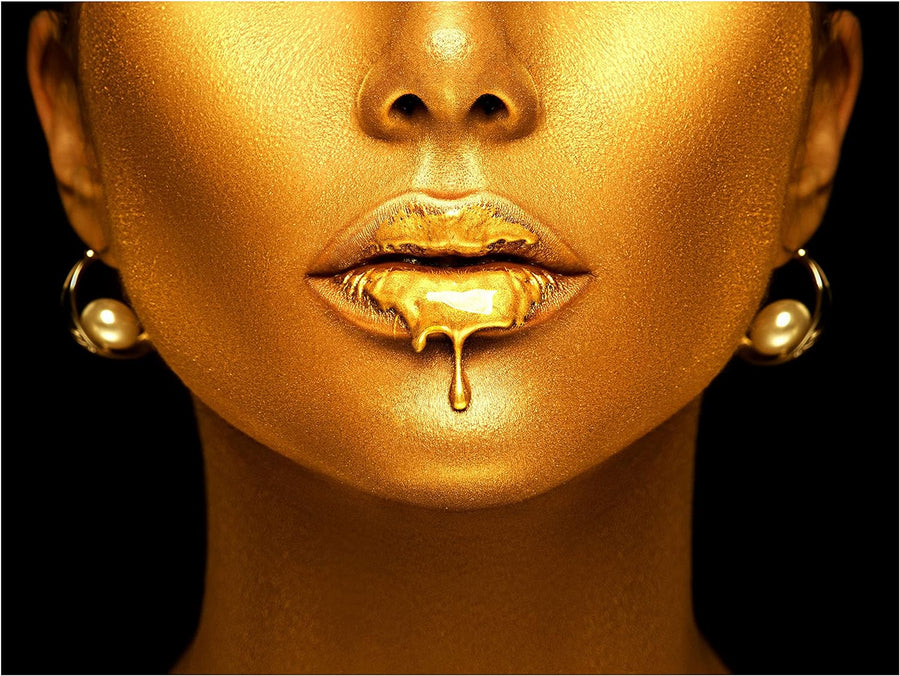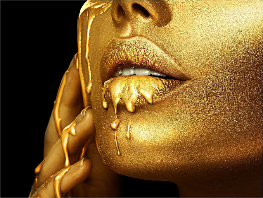 wandmotiv24 Leinwand-Bild Gold Collection, Grösse 40x30cm, Querformat, Frau Gold, tropfende Farbe, L