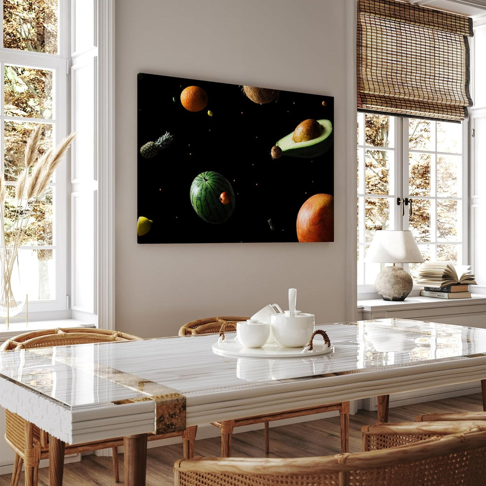 wandmotiv24 Essen & Trinken Motiv als Leinwandbild, 60x45cm, Querformat, Obst, Melone, Zitrone, Anan