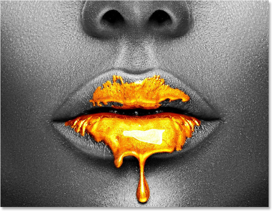 wandmotiv24 Deko Wandbild aus Acrylglas, Grösse 40x30cm, Querformat, Frauen Lippen mit Goldener Farb