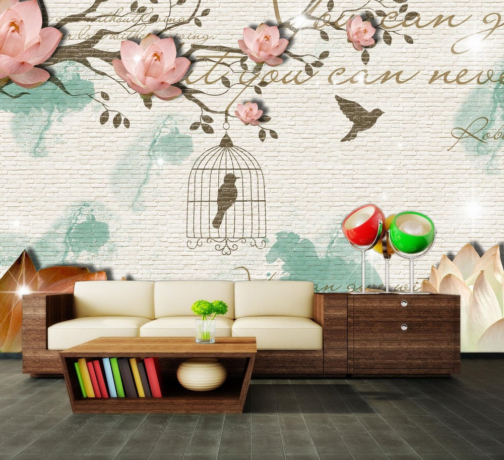 wandmotiv24 Fototapete Klinker hell Vintage Vogel, S 200 x 140cm - 4 Teile, Fototapeten, Wandbild, M