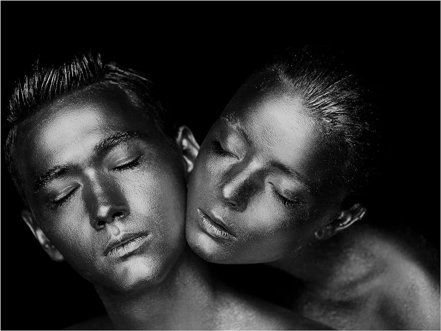 wandmotiv24 Leinwand-Bild Gold Collection, Grösse 40x30cm, Querformat, Frau & Mann in Gold-metallic,