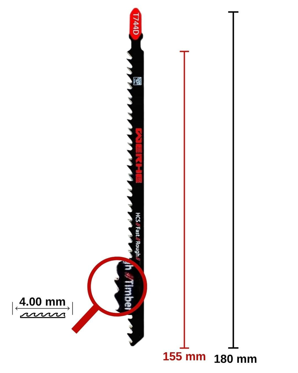 WERHE ® Profi – 10 x Holz Stichsägeblätt – C 180mm T744D Extra Lang – Schnelles Schneiden dicker Sch