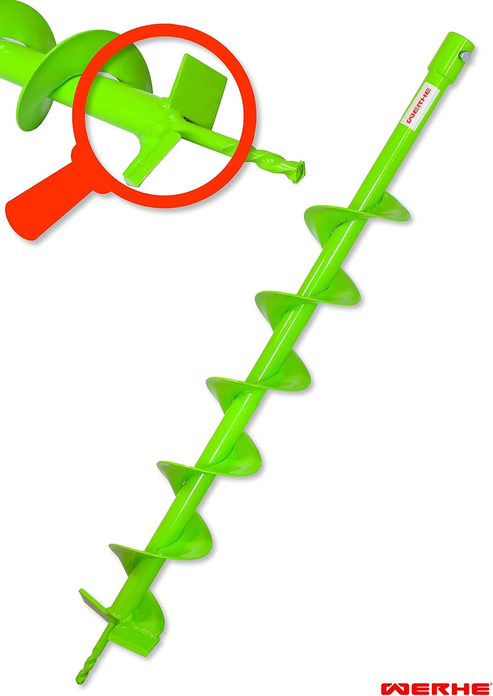 WERHE Profi Bohrer für Erdbohrer 60 mm Pfahlbohrer Brunnenbohrer präzise Bohrspitze Spiral eco Farbe
