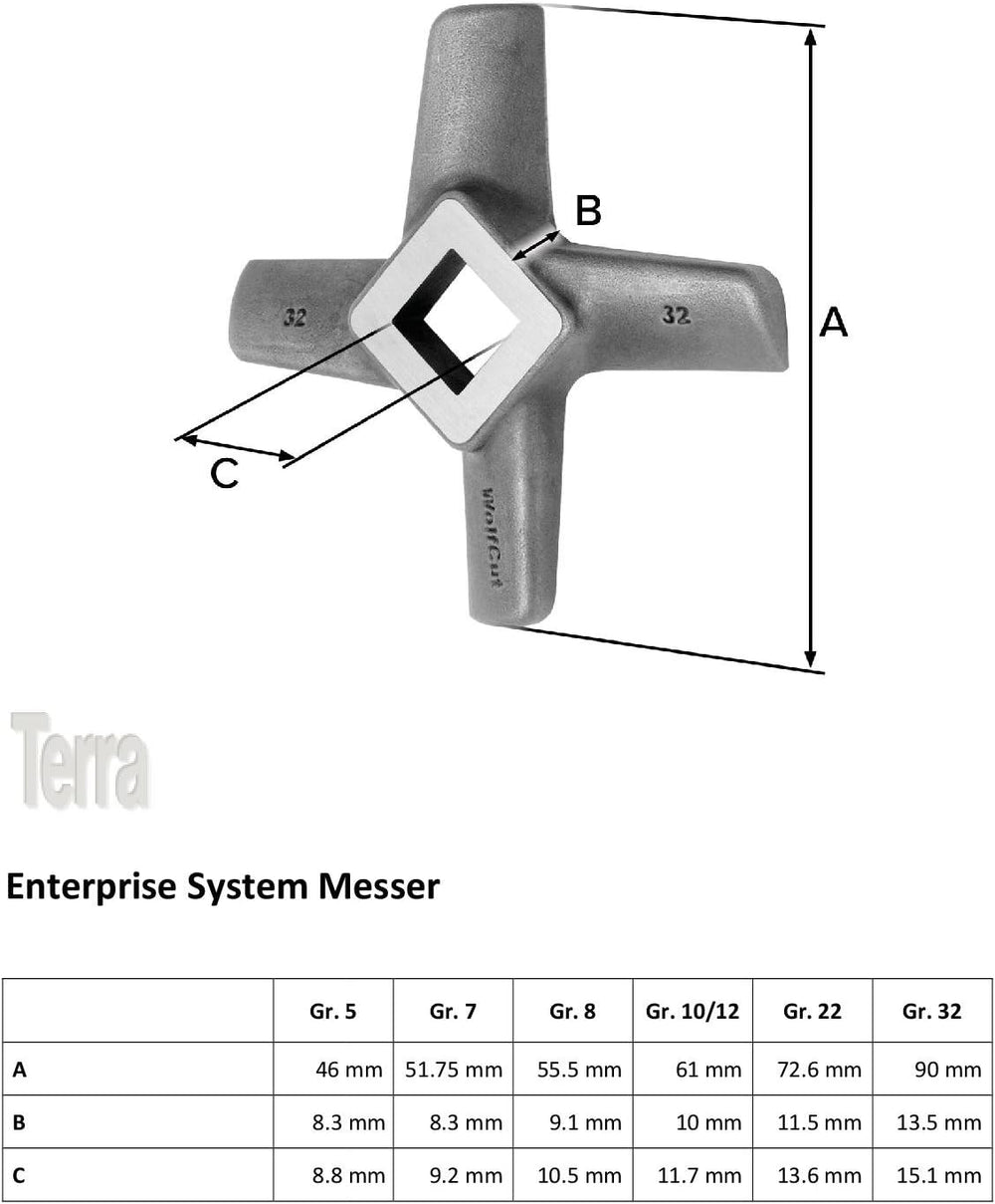 WolfCut Kreuzmesser kompatibel mit Fleischwolf Edertal EM82 LW5, EM82 VL-5 und EM82