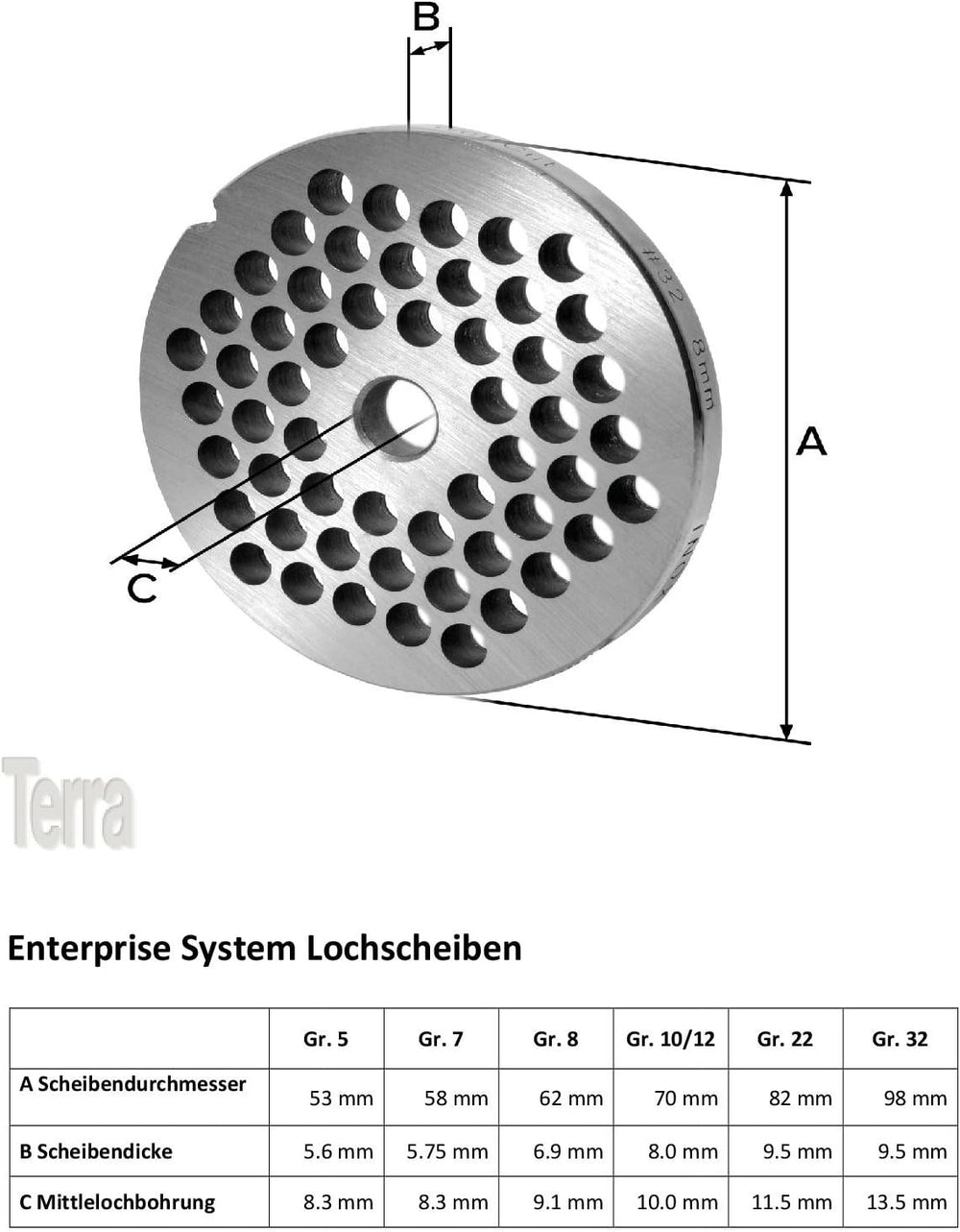 Wolfcut INOX Lochscheiben mit Nabe kompatibel mit Fleischwolf Bizerba FW82T / 22 (5,0 mm), 5,0 mm