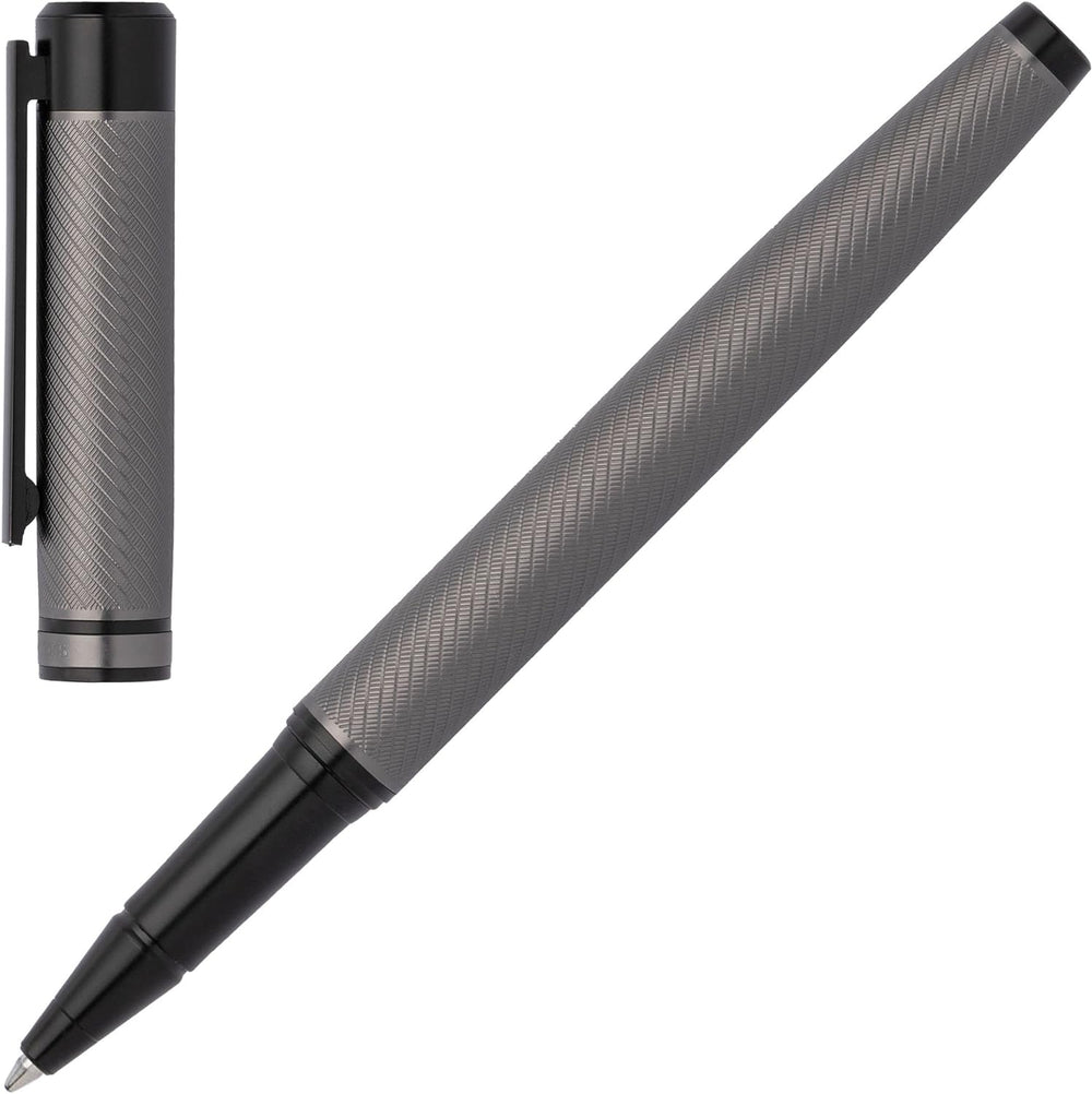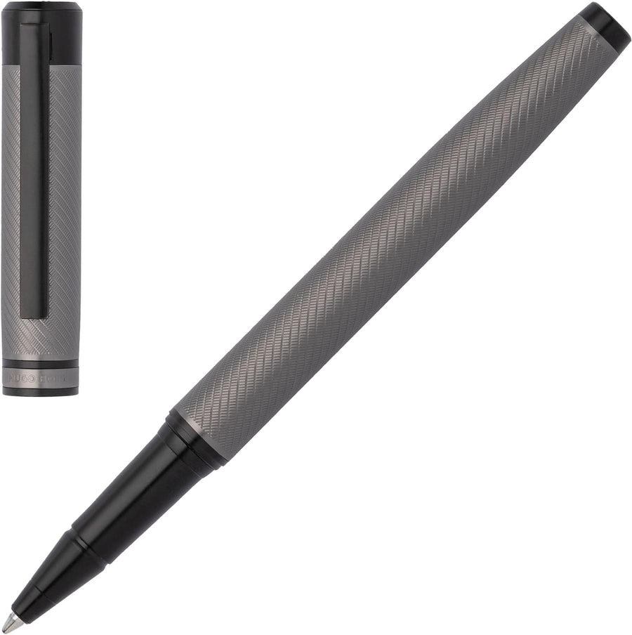 Hugo Boss Tintenroller Chevron Gun aus Messing in der Farbe Grau mit einer Länge von 13,7cm, Tintenf