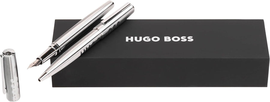 Hugo Boss Stifte-Set Label Chrome HPBP209B (Kugelschreiber & Füllfederhalter) | Geschenkbox