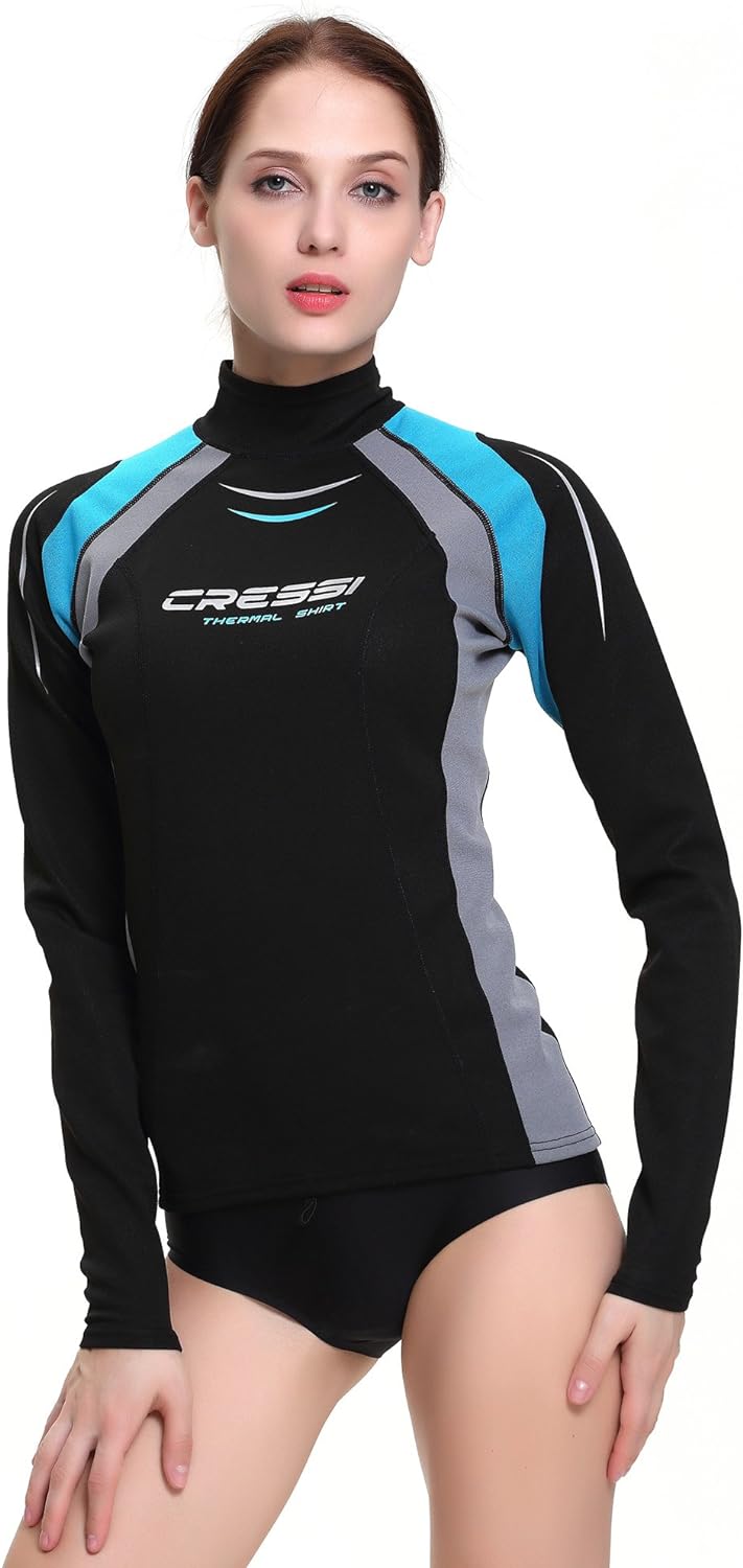 Cressi Termico Long Sleeve Lady Swimsuit Schwarz/Logo Aquamarin XS/1 Standard, Schwarz/Logo Aquamari